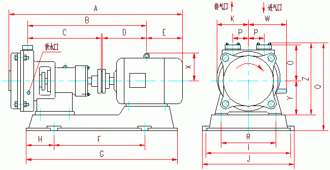 SZB-4、SZB-8水環式真空泵外形及安裝尺寸圖